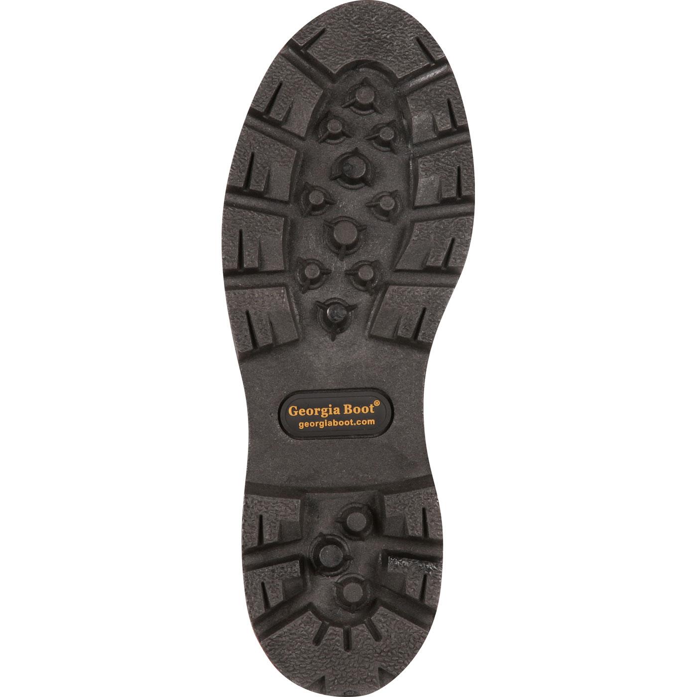 Need a new steel toe boot. Look no further. You need the Georgia Homeland Steel Toe Waterproof Work Boot. At eight inches tall, the brown work boot meets the ASTM F2413 classification for protective toe and for electrical hazard, meaning that the steel toe boot is safe for anyone working with larger objects and electrical wire. The men's brown work boot will keep your toes dry in snow, hail and rain. It's made from full-grain waterproof leather and has the Georgia waterproof system. This footwear has a direct-attached oil-resistant PVC outsole to keep you from tracking oil everywhere. But don't worry. It's very lightweight and durable. Going to be on your feet all day. No problem. This men's work boot has a TDC (Technology Driven Comfort) polyurethane insole, which will make long days a breeze. The comfortable work boot features a steel shank for arch support. This construction boot also is well-made with 900-denier CORDURA which resists tears, abrasions and scuffs. Long, hard work can't tear down these boots. Why wait. You need the Georgia Homeland Steel Toe Waterproof Work Boot today.