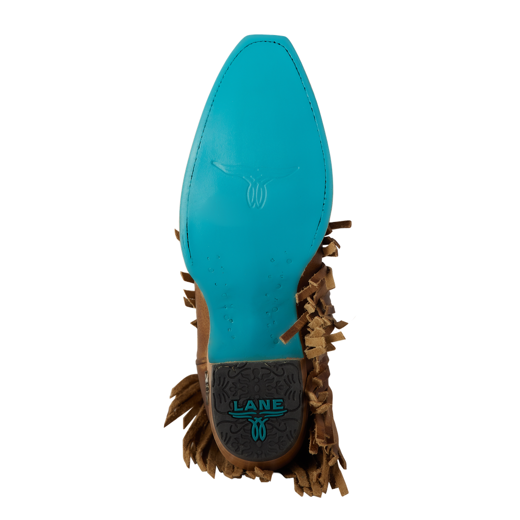 From rodeo to runway this chic boho western cowgirl bootie is ready for wherever the night takes you. A modern play on traditional flame stitch & asymmetrical fringe detailing. She's a must have in your closet. Dress her down with a chunky sweater and oversized blouse or spice her up for the ultimate girls night out with your favorite mini dress.