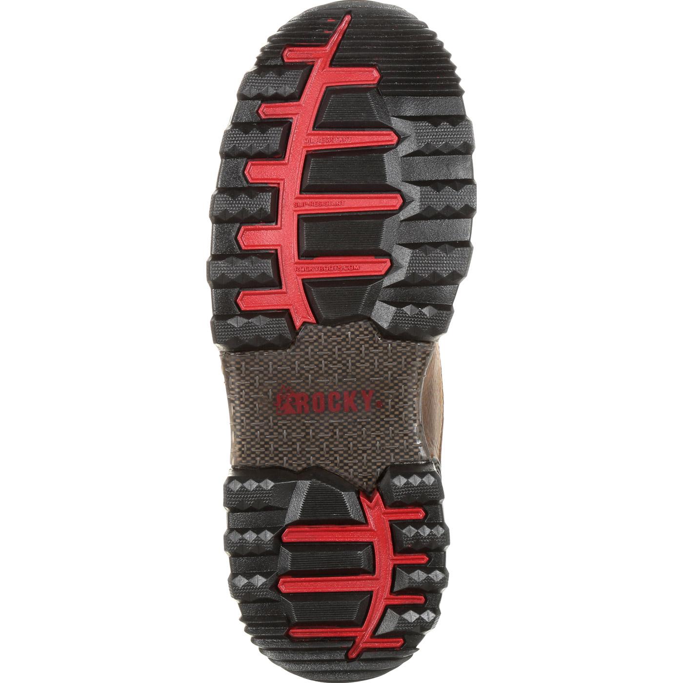 Rocky is proud to introduce the industry's first ASTM certified externally attached protective toe with a lightweight, flexible cement construction. This innovative composite toe gives your toes space without compromising safety. Designed for comfort with our Rocky Rebound cushioning midsole, you may just forget you're wearing a safety toe. This externally attached composite toe protects you if something falls on your toes, up to 75 pounds of impact and compression. This construction boot is also electrical hazard resistant, meaning it provides a secondary source for reducing the risk of electrocution. This work boot meets the ASTM standards for both features. These 5" work boots are designed for anything mother nature throws your way, featuring Rocky's new VP Waterproof technology. This Vapor Pass proprietary technology has a waterproof barrier that keep liquids out without trapping perspiration in, allowing your feet to stay cool and dry. For added stability and comfort this work boot features a fiberglass shank. Above the shank is our well-known Terra Suspension footbed, providing cushion and support. This combination of materials allows the Rocky work boots to be lightweight, flexible, and comfortable, while still delivering first class protection. The boot sole is also oil- and slip-resistant, which helps you keep your balance on the jobsite. The performance of a safety toe with the comfort of a soft toe, get yours today.