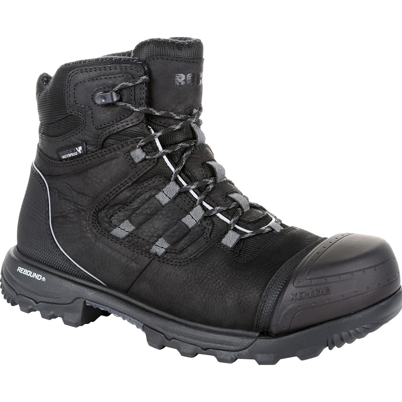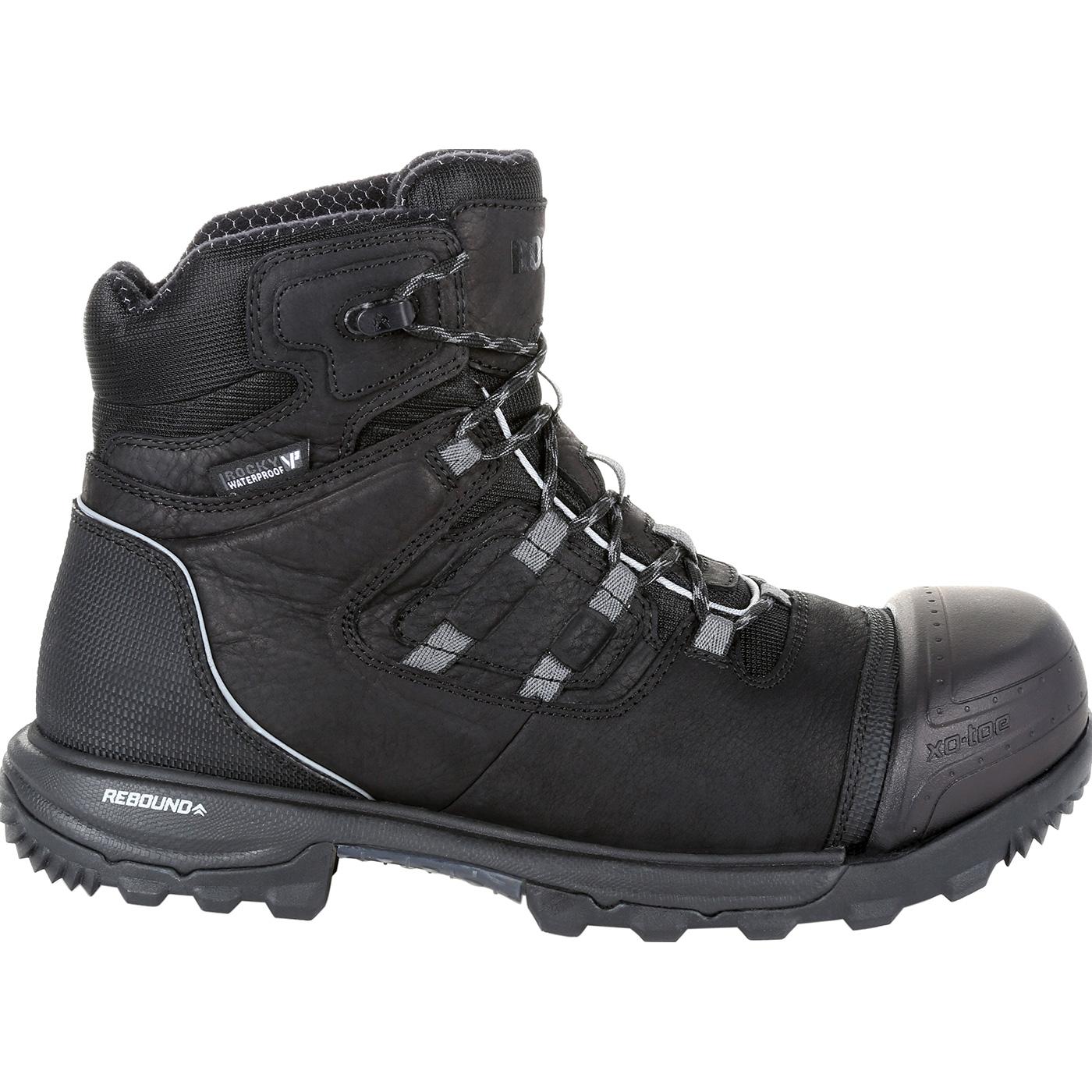 Rocky is proud to offer the industry's first ASTM certified externally attached protective toe with a lightweight, flexible cement construction. This innovative composite toe gives your toes space without compromising safety. Designed for comfort with our Rocky Rebound cushioning midsole, you may just forget you're wearing a safety toe. The externally attached composite toe offers protection of up to 75 pounds of impact and compression. This construction boot is also electrical hazard resistant, meaning it provides a secondary source for reducing the risk of electrocution. This work boot meets the ASTM standards for both features. These 5" work boots are designed for anything mother nature throws your way, featuring Rocky's VP Waterproof technology. This Vapor Pass proprietary technology has a waterproof barrier that keeps liquids out without trapping perspiration in, allowing your feet to stay cool and dry. For added stability and comfort, this work book features a fiberglass shank. Above the shank is our well-known Terra Suspension Footbed, providing cushion and support. This combination of materials allows these boots to be lightweight, flexible, and comfortable, while still delivering first class protection. You can be confident that your heels won't slip up and down in your boots throughout the workday with the innovative external molded "Heel Lock", adding an extra level of stability. These boots feature oil and slip resistant rubber outsoles, which helps you stay safe and balanced on the job site. The XO-TOE offers the performance of a safety toe with the comfort of a soft toe. Get yours today.